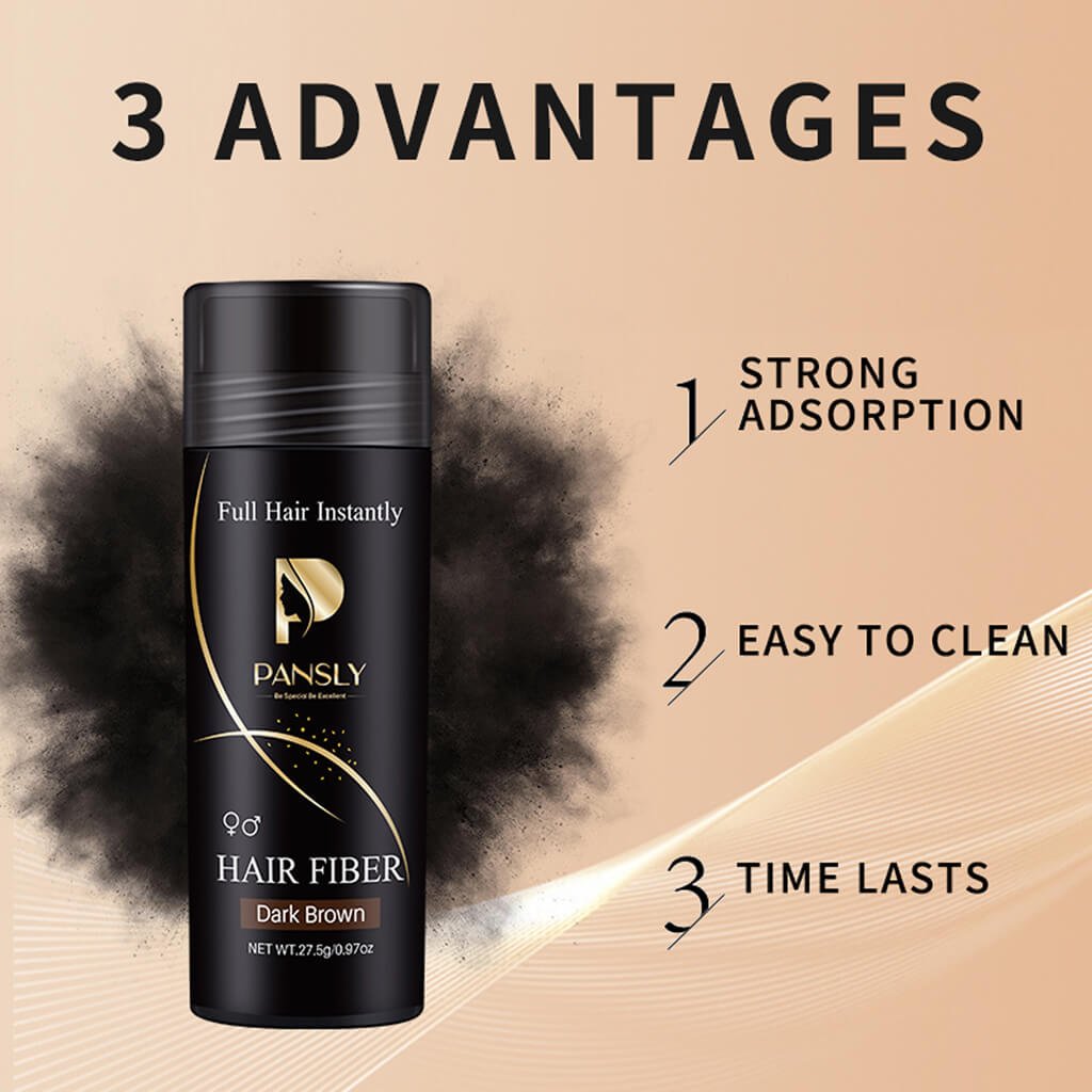PANSLY Hair Fibers 27.5g is a lightweight, black hair fiber powder that instantly conceals thinning areas and bald spots for a fuller, thicker appearance. The micro-fibers blend naturally with existing hair, providing a realistic and long-lasting effect. Perfect for men and women seeking quick, non-invasive hair coverage.