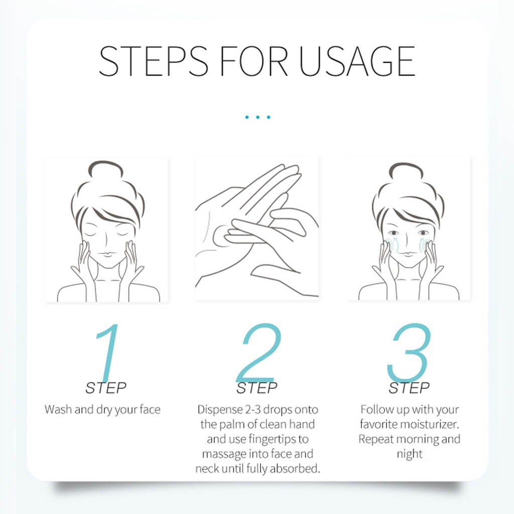Dispense 2–3 drops onto clean hands and massage onto face and neck until fully absorbed.